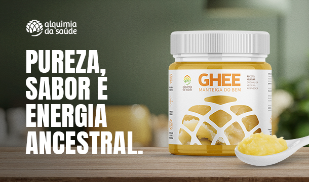 A Manteiga Ghee da Alquimia da Saúde é uma gordura clarificada e purificada, elaborada a partir da manteiga tradicional, mas livre de lactose, caseína e impurezas. Durante o processo artesanal de preparo, toda a água e os sólidos do leite são cuidadosamente removidos, resultando em um alimento puro, estável e altamente nutritivo. Sua cor dourada e brilho intenso lembram o ouro líquido — símbolo da pureza e vitalidade que ela representa. Rica em vitaminas A, D, E e K, a Ghee é considerada uma das fontes de gordura mais nobres e equilibradas. Seu uso regular contribui para fortalecer o sistema imunológico, promover a digestão, melhorar a absorção de nutrientes lipossolúveis e nutrir ossos, pele e cabelos. Por sua alta estabilidade ao calor, é ideal para cozinhar, refogar ou finalizar pratos, sendo uma excelente alternativa aos óleos refinados e margarinas industriais.